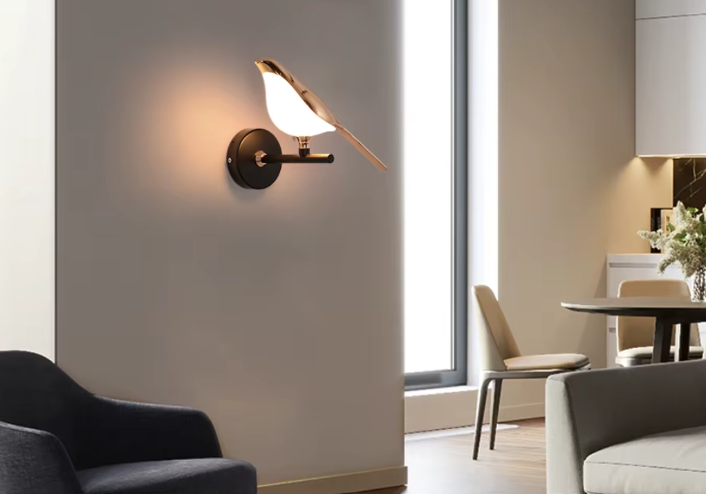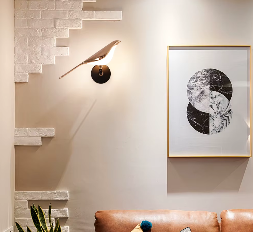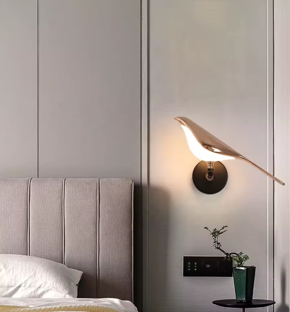 أناره جداريه طير ذهبي ممكن الدوران 360 درجه مع مصباح ليد يعمل لمدة 50000 ساعه 7 واط