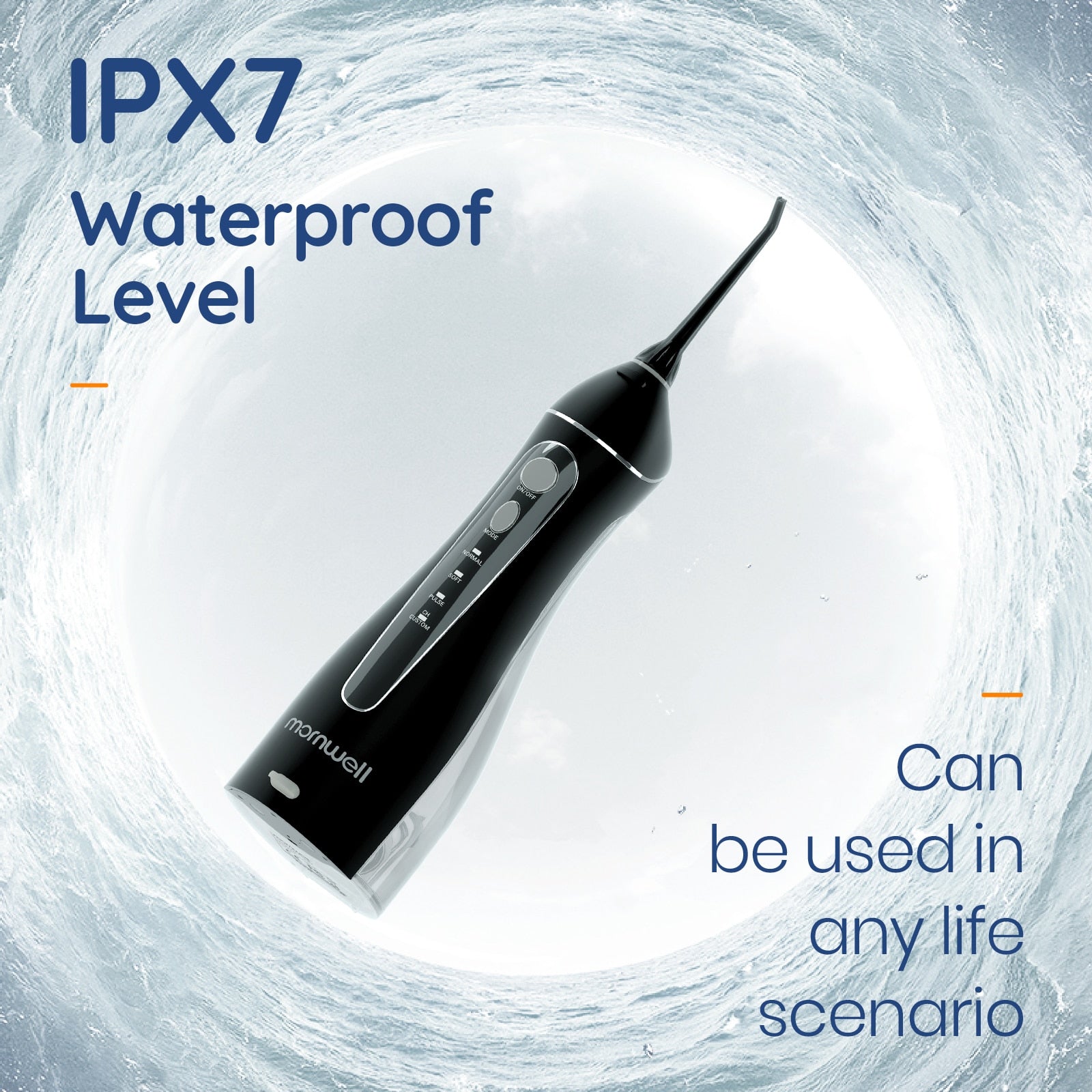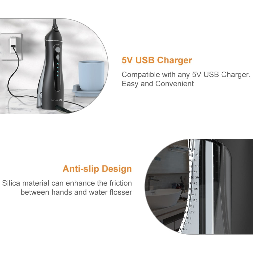 جهاز تعقيم وغسل للفم من مورنويل مع حقيبة سفر مع شاحن يو أس بي مع 5 نوزلات مختلفه يسع 200 مل
