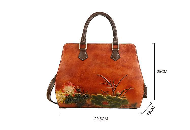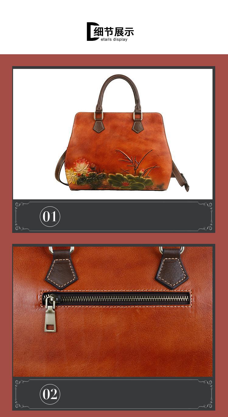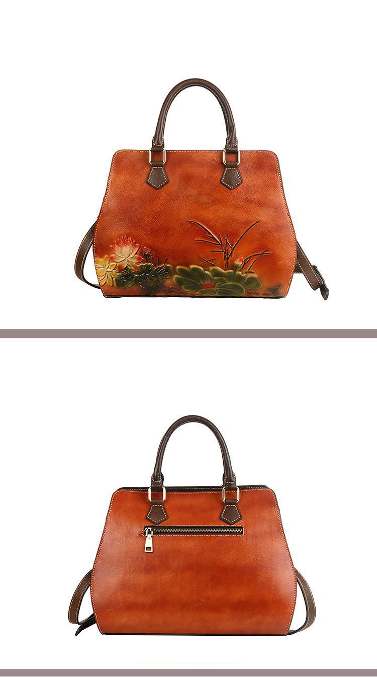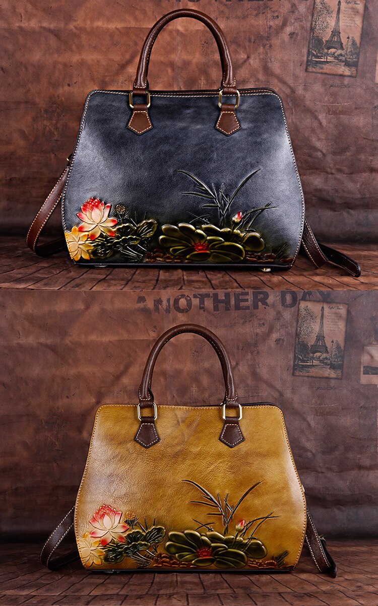 حقيبه نسائيه جلد بقر مرسومه حفر