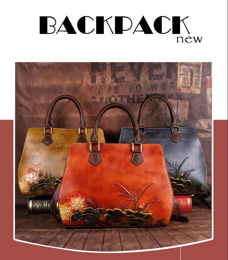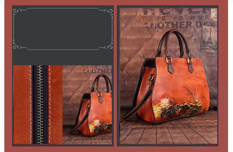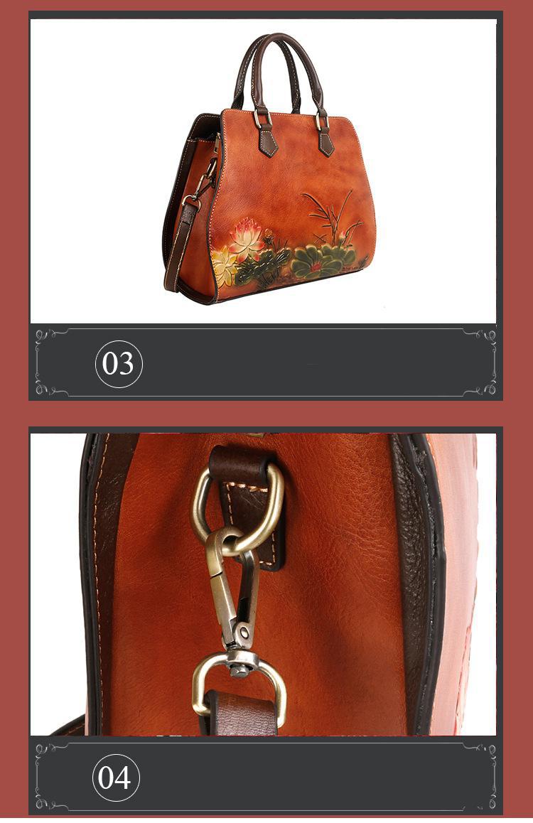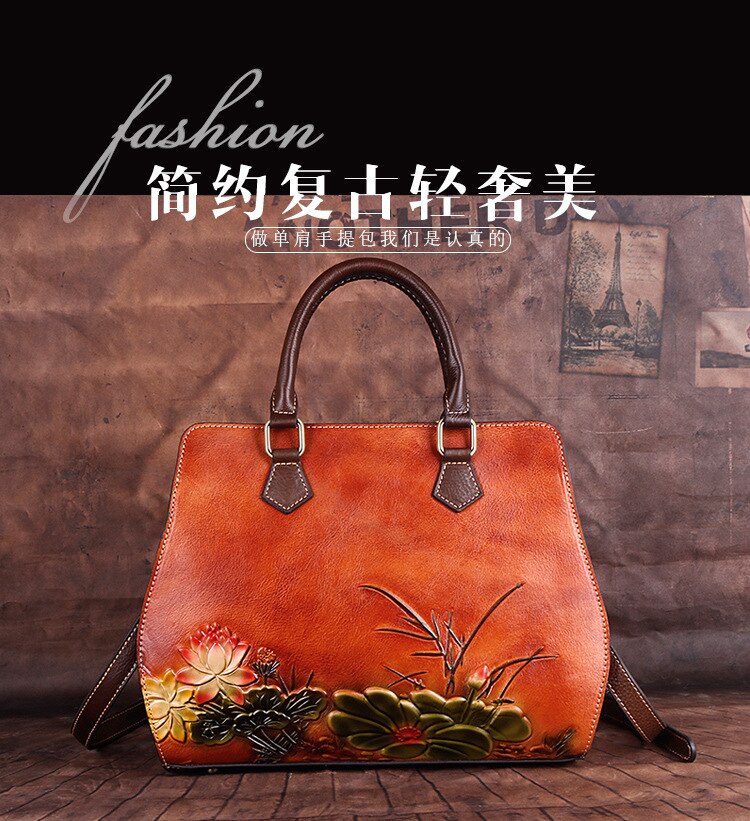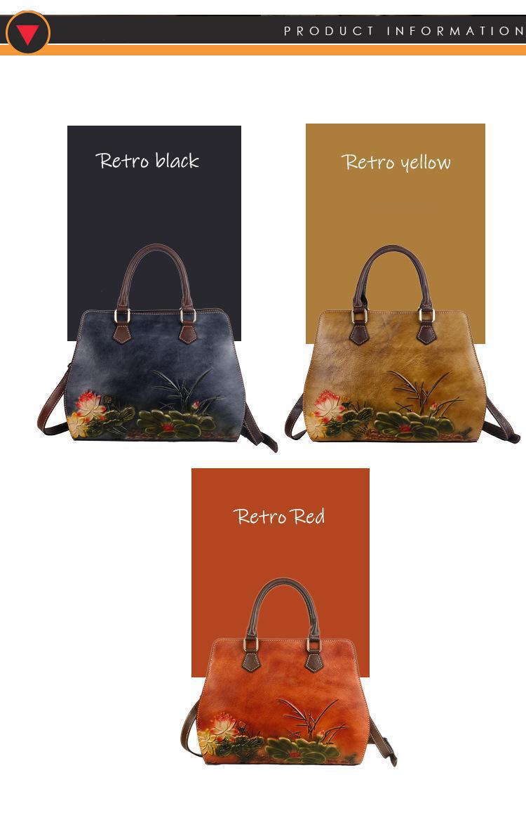 حقيبه نسائيه جلد بقر مرسومه حفر